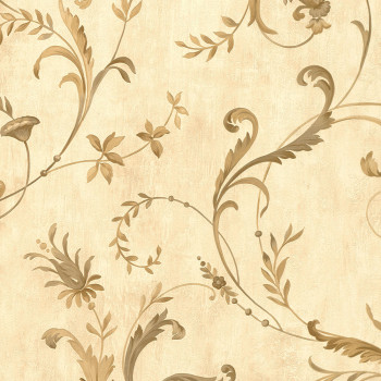 Luxury non-woven wallpaper with plant ornaments on a fine stucco background in beige.