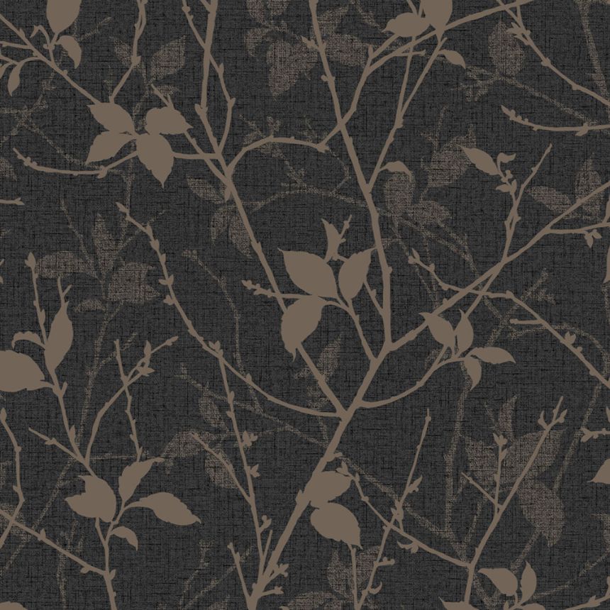 Luxury wallpaper with a pronounced fabric texture in black with metallic marbling.