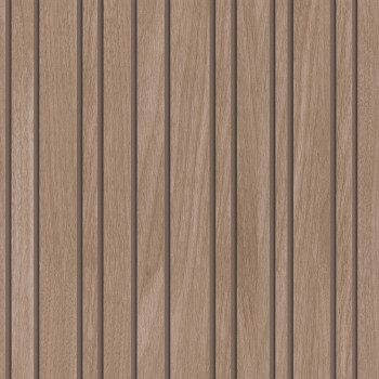 Non-woven wallpaper with a vinyl surface in brown shades with a wood effect.