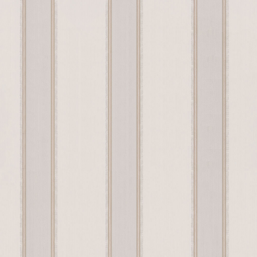 Non-woven wallpaper with a vinyl surface in white, gray and beige shades with stripes.