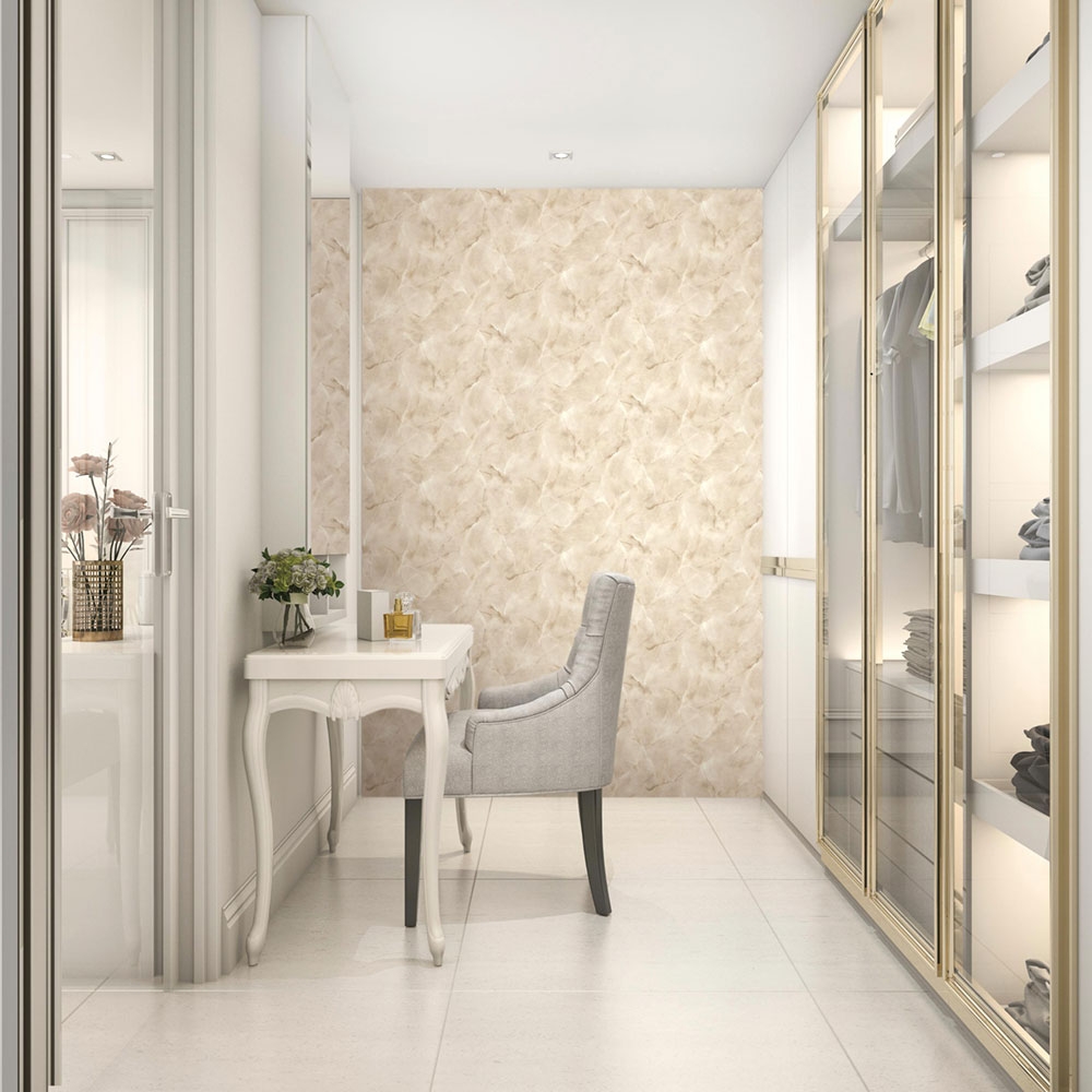 • Wallpapers that can handle it all. The strong non-woven backing ensures easy hanging and removal, while the vinyl surface adds outstanding resistance to scratches and moisture. A great choice for hallways, kitchens or living rooms where walls really take a beating. Big bonus? Easy care – just wipe with a damp cloth. Step-by-step instructions are available in our wallpapering guide.