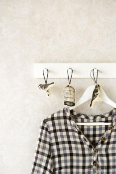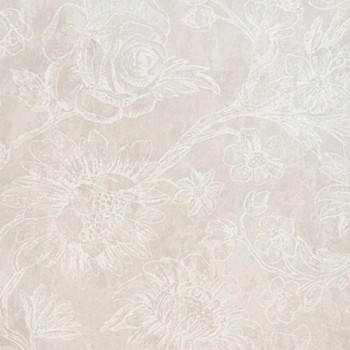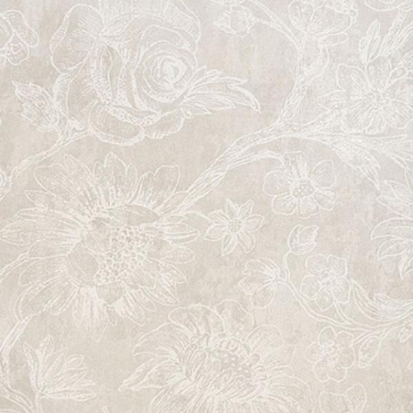 A floral pattern on gray-beige non-woven wallpaper.