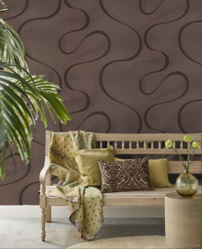 Spectacular brown curves on a bronze non-woven wallpaper.